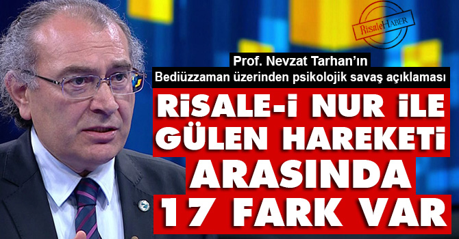 Prof. Dr. Nevzat Tarhan, "Bediüzzaman üzerinden psikolojik savaş" başlığı ile son günlerdeki tartışmaları yorumladı. Mustafa İslamoğlu'nun sözlerini eleştiren Tarhan, ardından Risale-i Nur ile Gülen hareketi arasındaki 17 farkı maddeler halinde sıraladı.