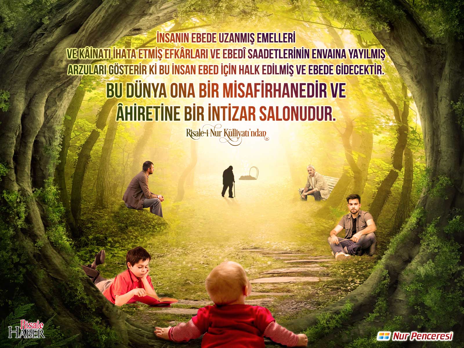 İnsanın ebede uzanmış emelleri ve kainatı ihata etmiş efkarları ve ebedi saadetlerinin envaına yayılmış arzuları gösterir ki bu insan ebed için halk edilmiş ve ebede gidecektir.