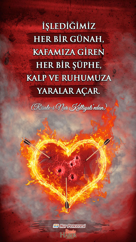 İşlediğimiz herbir günah, kafamıza giren herbir şüphe, kalb ve ruhumuza yaralar açar. (Bediüzzaman)