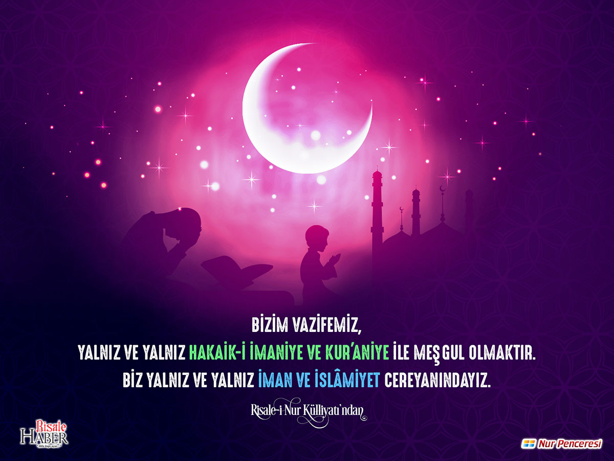 Bizim vazifemiz, yalnız ve yalnız hakaik-i imaniye ve Kur'âniye ile meşgul olmaktır. Biz yalnız ve yalnız iman ve İslâmiyet cereyanındayız. (Bediüzzaman Said Nursi)