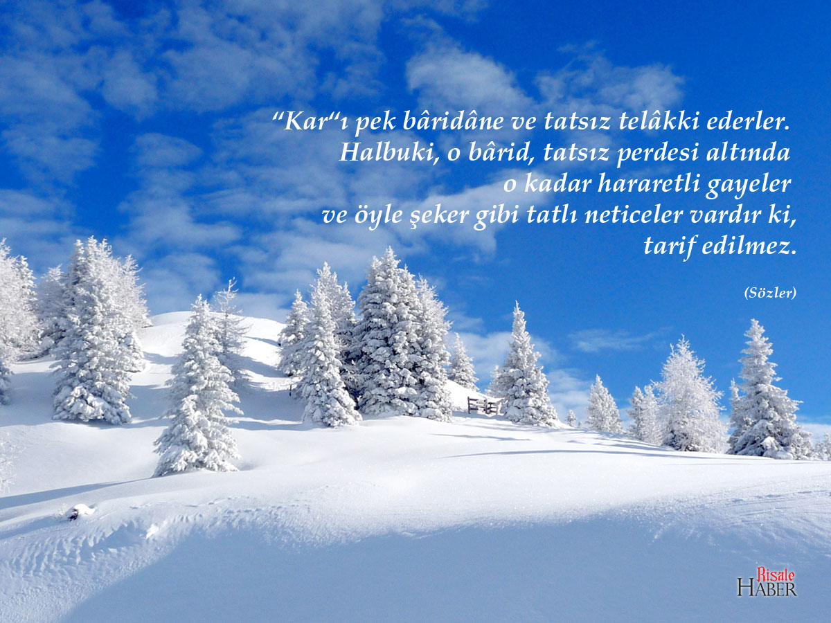 “Kar“ı pek bâridâne ve tatsız telâkki ederler. Halbuki, o bârid, tatsız perdesi altında o kadar hararetli gayeler ve öyle şeker gibi tatlı neticeler vardır ki, tarif edilmez.