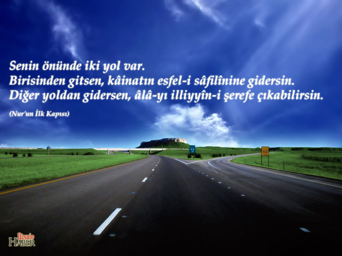 Senin önünde iki yol var. Birisinden gitsen, kâinatın esfel-i sâfilînine gidersin. Diğer yoldan gidersen, âlâ-yı illiyyîn-i şerefe çıkabilirsin.