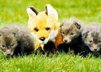 Öksüz yavru tilkiler, oyuncağı anne belledi