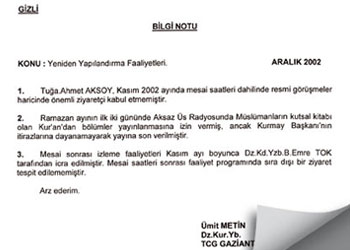 RisaleHaber'de dünün manşetleri 24 Ocak 2011 Pazartesi günü RisaleHaber'de çıkan manşet haberler... M.Kemal mi,Abdülhamid mi,ilkesel tutum mu?‘Tek kahraman’ anlayışından rahatsız olanların da aynı maraz ile mâlûl oldukları görülüyor Prof. Dr. Mehmet Görmez, ailesini anlattıDiyanet İşleri yeni Başkanı Prof. Dr. Mehmet Görmez, aile hayatının ve evliliğinin kariyerine nasıl etki ettiğini anlattı Kur'an'a gelen tahribatlara R.Nur set oluyorZaman yazarı Abdullah Aymaz'ın 'Duvarlar, setler...' başlıklı yazısı... Türkiye'den BM'ye İsrail raporuTürkiye, İsrail'in Mavi Marmara saldırısıyla ilgili olarak BM'ye sunduğu Ara Raporda, saldırıyı ayrıntılı şekilde anlatarak, saldırının tazminini istedi. Temel hak ve hürriyetler anayasada olmazDoç Dr. Osman Can, Türkiye Yazarlar Birliği'nin organizasyonunda "Yargı Sistemimiz ve Geleceği" konulu bir konferans gerçekleştirdi. M.Kırkıncı hayatını Risale Haber'e anlattıKur'an ve iman hizmetlerinin önde gelen isimlerinden Mehmet Kırkıncı Hocaefendi Risale Haber'e konuştu 7'den 70'e herkes Kur'an okumayı öğreniyorZonguldak'ın Ereğli İlçe Müftülüğü tarafından başlatılan "Kur'an-ı Kerim okumasını öğrenmeyen kalmayacak" kampanyasına 2 bin 611 kişi başvurdu. Türkiye'nin yüzde 25'i namaz kılıyorYazar Cemil Tokpınar, namazın dinin direği olduğunu belirterek Türkiye'de nüfusun yüzde 25'inin namaz kıldığını söyledi. Hizbullah, Said Nursi'den işine geleni seçiyorDoç. Dr. Süleyman Özeren, Hizbullah'ın Said Nursi'nin eserlerinden kendi istediklerini seçtiklerini söyledi Hür Adam Cündioğlu'na da yaranamamış!Yeni Şafak yazarı Cündioğlu'nun Hür Adam eleştirisine bir cevap da Risale Haber yazarı Mustafa Akca'dan geldi 3. 'Risale-i Nur ve Sanat Çalıştayı' başlıyorDaha önce 1.si ve 2.si gerçekleştirilen Risale-i Nur ve Sanat Çalıştay'ının 3.sü Ankara'da gerçekleştirilecek... Rus ajanları Risale-i Nur dersini bastıFederal Güvenlik Servisi FSB’nin, ülkede yasadışı ilan edilen “Nurcular”a yönelik bir operasyon düzenlediği açıklandı RisaleHaber'de dünün manşetleri23 Ocak 2011 Pazar günü RisaleHaber'de çıkan manşet haberler... Menderes İnönü'ye S.Nursi cevabı vermiştiZeybek, İnönü’nün gösterdiği tepkiye Menderes’in cevabına dikkat çekti Bediüzzaman, ekonomiden söz ederken...Zaman yazarı Ali Ünal'ın 'Bir tarih okuması' başlıklı yazısı... Askeri birlikte Kur'an-ı Kerim'e yasakSuga Harekât Planı'nda, komutanların radyodan Kur'an-ı Kerim okunmasına bile tahammül edemediği ortaya çıktı Sünnet, Kur'an'ın hayat pratiğidirKur'an'ın Peygamber (sas) tarafından hayata geçirilmiş, pratiğe dökülmüş hali olan sünnet, sadece birtakım uygulamalardan ibaret gibi algılanıyor. S.Nursi: Hacca gittiğini bilseydim karşılardımRisale-i Nur’ları İzmir’e ilk defa getiren Abdurrahman Cerrahoğlu’nu rahmetle anıyoruz Hiçbiriniz kendisi için istediğini...Günün Hadis-i Şerif'i... Onların Tevrat ve İncil’deki vasıfları şöyledirGünün Ayet-i Kerime meali... Zalim ve vicdansız bir adama karşı…Günün Risale-i Nur dersi
