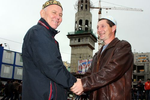 Dini eserler, seccade ve takkelerin satıldığı tezgahlar da bayram namazına gelen kalabalığa hizmet sundu. Uzaktan rahat görülebilen elinde 'sadaka' yazılı dövizi ile dolaşan ve cami inşaatı için sadaka toplayan cami görevlisinin başı en kalabalık olanlardan. Kapalı ve açık alanlarda toplam 12 bin kişinin namaz kılabileceği yeni caminin 70 metreyi aşacak minareleri tamamlanmak üzere. Rusya Devlet Başkanı Dmitri Medvedev'in de incelemelerde bulunduğu yeni caminin 2011 yılına hazır olması bekleniyor.