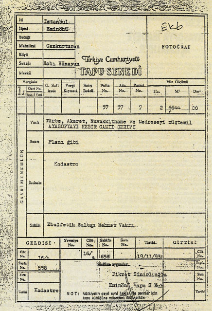 (Ayasofya'nın tapusu Ayasofya'nın Cami-i Kebir olarak belirtildiği tapu senedi. Sahibinin Fatih olması sizi şaşırttı mı? Başka kim olacaktı ki?)