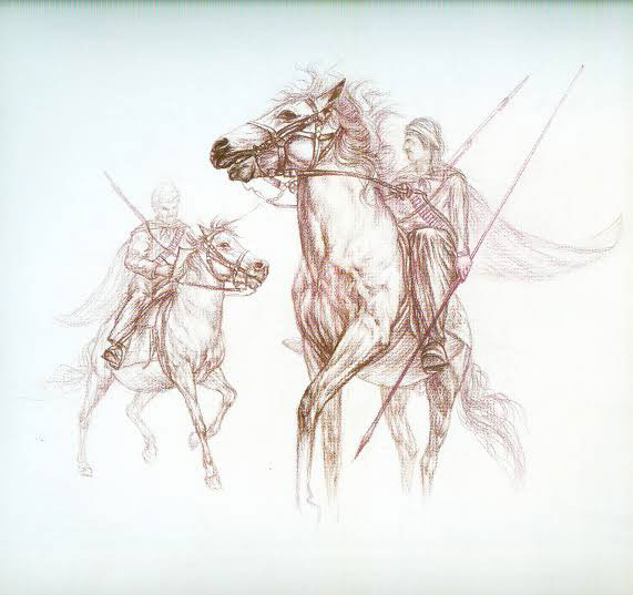 Molla Habip (rh) ve Said Nursi: Pasinler/ Gevaş Savunmasında/ Refet Kavukçu çizimi. (Bediüzzaman Albümü'nden)