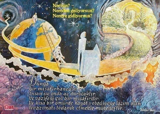 "Şu sanatlar, şu nakışlar, şu cilveler bütün esmâsı kudsiye ve cemîle olan bir Zât-ı Cemîl-i Zülcelâlin tazelenen sanatlarıdır, tahavvül eden nakışlarıdır, taharrük eden aynalarıdır.“