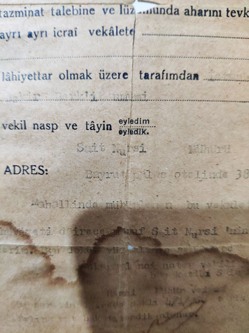 Ankara Birinci Noterliği tarafından düzenlenen vekaletnamede Said Nursi'nin "İstanbul Barosu'ndan Bekir Berk'i umumi vekil nasp ve tayin eyledim" ifadeleri yer alıyor.