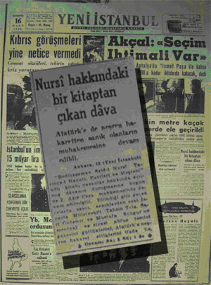 Yeni İstanbul gazetesi aynı haberi “Nursi Hakkındaki bir kitaptan çıkan dava” başlığı ile veriyor:
