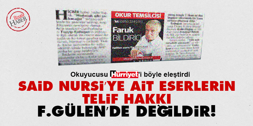 Geçtiğimiz günlerde bir haberinde “Bediüzzaman Said Nursi’ye ait eserlerin telif hakkı sahiplerinden Fetullah Gülen” ifadesi geçen Hürriyet gazetesine okurları tepki gösterdi.