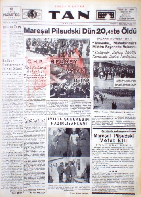 13 Mayıs 1935 tarihli Tan Gazetesi