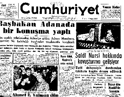 Çalışmama gazete ve kupür araştırması olarak başlamak söz konusu olunca, ilk olarak Cumhuriyet Gazetesini tercih ettim. Bu tercihim bilerek oldu. Bu oldukça isabetli olmuş zira Cumhuriyet gazetesi ve dolayısıyla muhabirleri Bediüzzaman’ın peşine, neredeyse sanatçıların peşine takılan paparazziler gibi takılıp, her hareketini haber yapmışlar. Bunu menfi bir bakışla yapmışlar fakat bugün, elimizde (belli bir süzgeçten geçirmek şartı ile) bazı bilgi ve kaynaklar oluşmuş durumda.