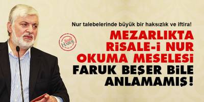 Mezarlıkta Risale-i Nur Okunur mu?Yrd. Doç. Dr. Mehmet Dilek, Mezarlıkta Risale-i Nur okunmasına dair eleştirileri cevaplıyor02 Mayıs 2021 Pazar 21:08Mezarlıkta Risale-i Nur okuma meselesi: Faruk Beşer bile anlamamış