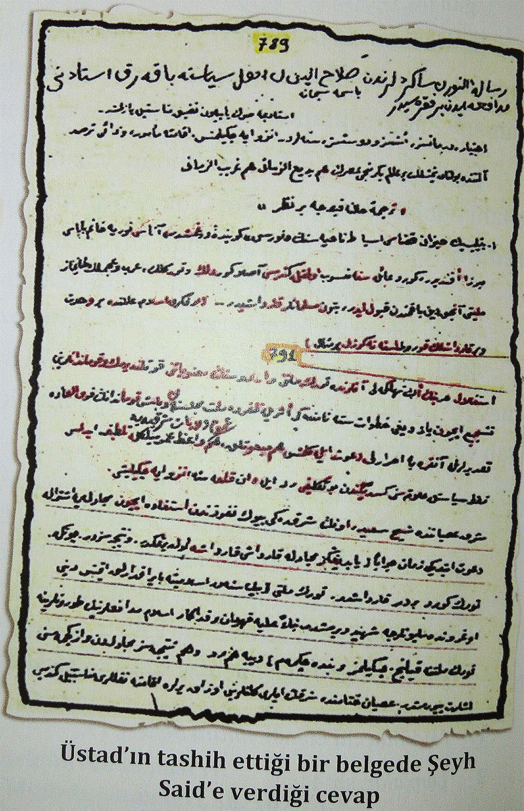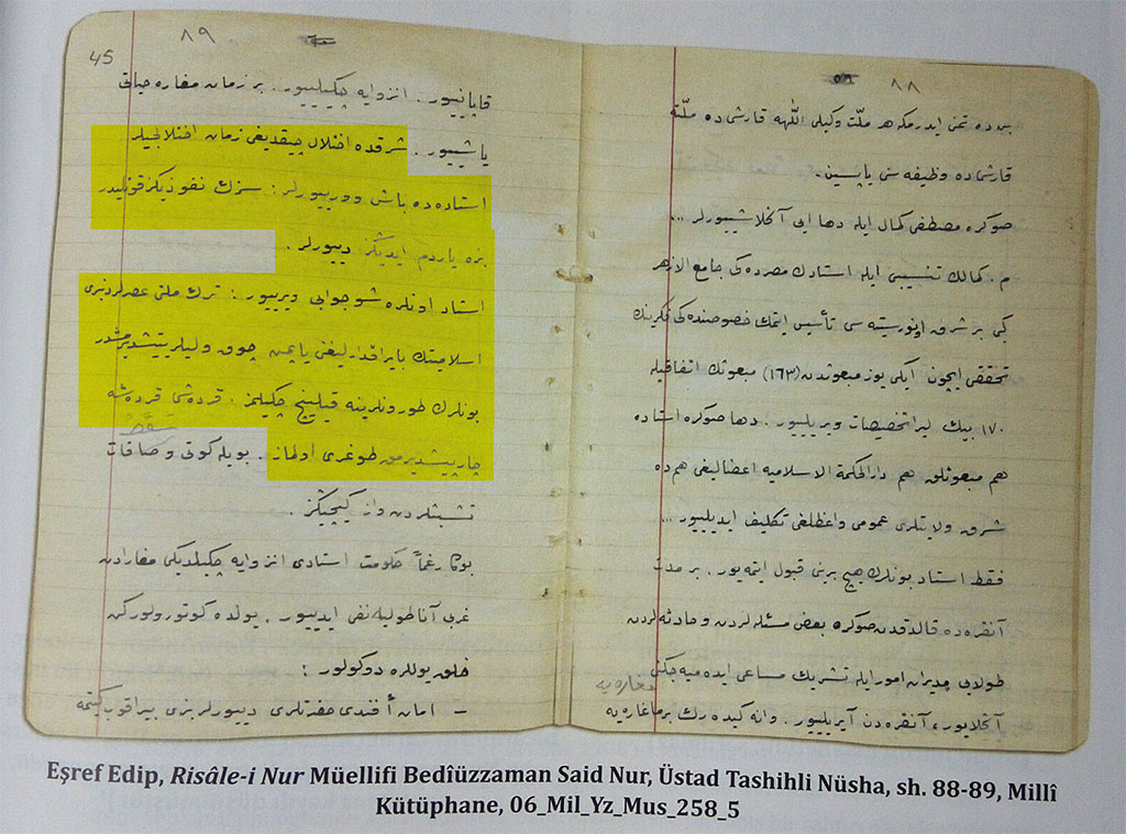 Alttaki belge de, Hazret-i Üstâd’ın tashih ettikten sonraki hâlidir ve Şeyh Said ile ilgili satırlar altı çizili satırlarda beyân ediliyor.