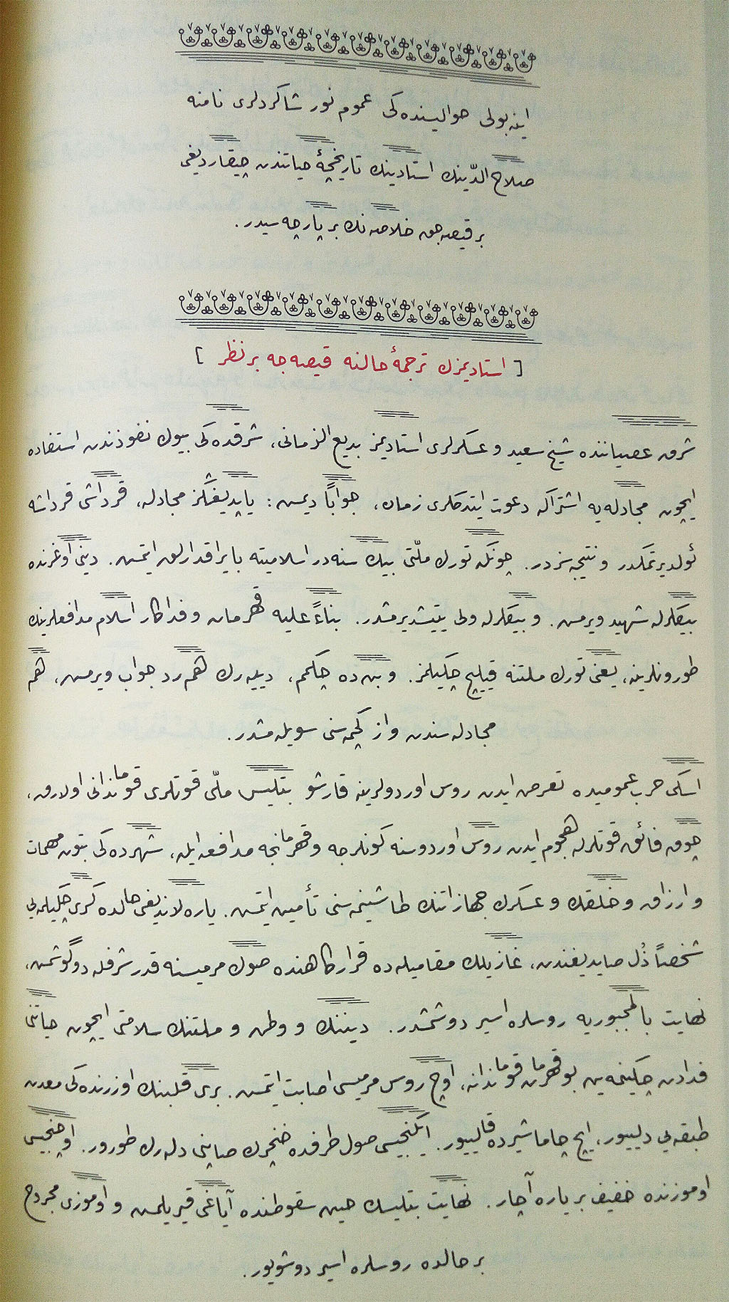 ‘Yaptığınız mücâdele kardeşi kardeşe öldürtmektir ve neticesizdir. Çünki türk milleti bin sene İslâmiyet’e bayrakratlık etmiş. Dîni uğrunda binlerle şehid vermiş ve binlerle velî yetiştirmiştir. Binâaleyh, kahraman ve fedâkâr İslâm müdafilerinin torunlarına yâni Türk milletine kılınç çekilmez ve bende çekmem’ veya tashîh sonrasındaki “Yaptığını mücâdele, kardeşi kardeşe öldürtmektir. Ve neticesizdir. Çünkü Türk-Kürt birdir, kardeştir. Türk milleti bin senedir bayraktarlık etmiştir. Dîni uğrunda milyonlarca şehid vermiştir. Binâaleyh, kahraman ve fedâkâr İslâm müdafilerinin torunlarına Türk milletine kılınç çekilmez ve bende çekmem.”