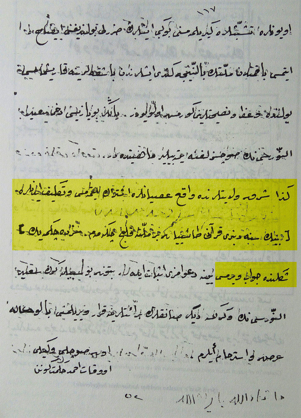 Aynı şekilde, Arşiv Belgeleri Işığında, Cilt:2 ‘de, Ahmet Akgündüz, Milli Kütüphane’de bulunan Osmanlıca Teksir Asâ-yı Mûsâ’nın âhirindeki bu sayfayı kaydetmiştir. Onu da buraya kaydediyorum: