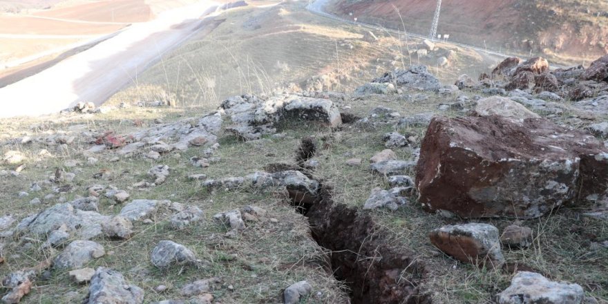 Yol yapım çalışmalarının yapıldığı bölgede daha önce gözlenen çatlaklar, deprem sonrasında derin ve uzun yarıklara dönüştü.