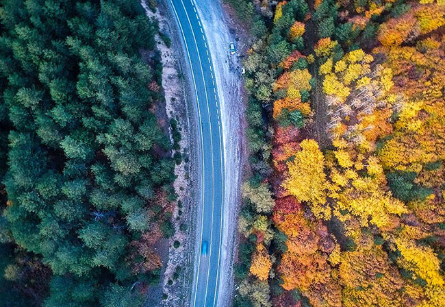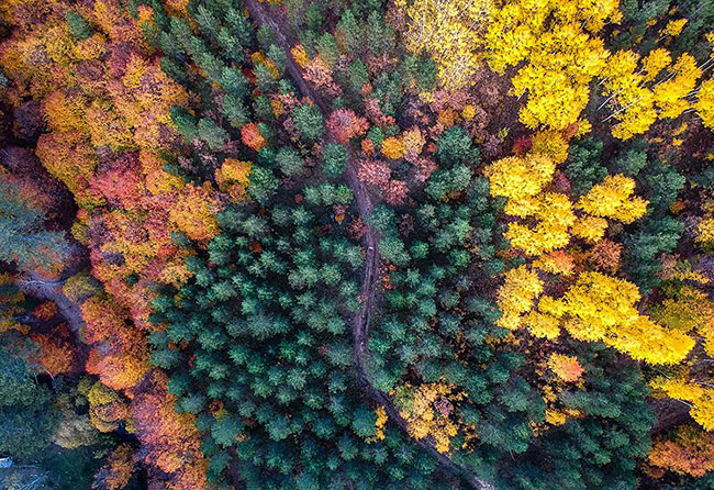 İnegöl-Domaniç kara yolunda bulunan ormanlık alan, büründüğü sarı, yeşil ve kızıl renklerle görenlere adeta görsel bir şölen sunuyor. AA