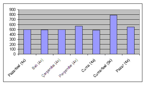 Cumartesi´nin diğer günlerden daha yüksek olmasının sebebi araştırmayı yaptığımız sene Ramazan ayına beş Cumartesi gününün denk gelmesi. Diğer günlere sadece dört gün denk geliyordu. Eğer Cumartesinin beşinci gününü saymaz isek diğer günlerle neredeyse aynı rakam ortaya çıkıyor.