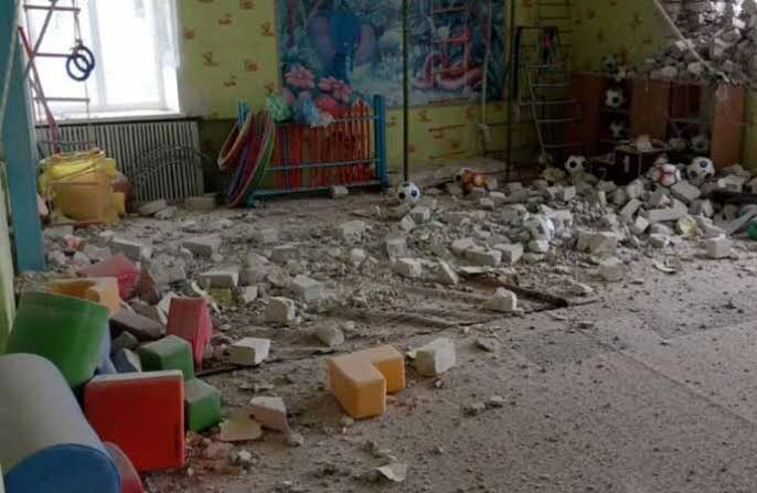 Doğu Ukrayna'da Rus uçaklarının vurduğu anaokulu.