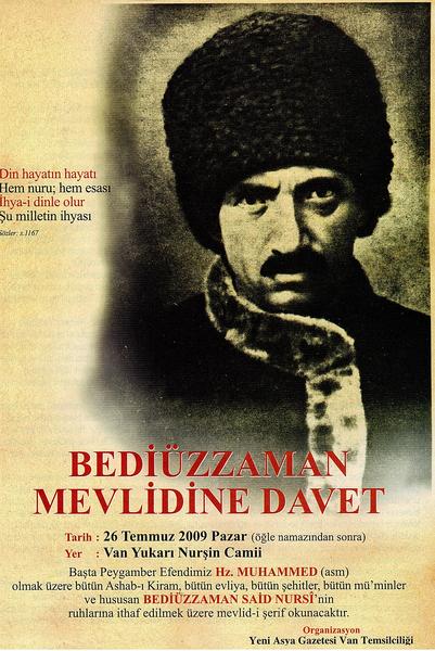 Van Bediüzzaman Mevlidi, 26 Temmuz 2009 Pazar günü, Yukarı Nurşin Camii'nde öğle namazından sonra düzenlenecek.
