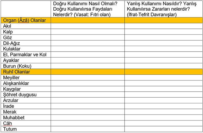 “Vücud kullanım kılavuzu” fıtrat kitabıdır. Bu anlamda vasat olanı (fıtri) inanış, tutum, davranış ve bilişsel, duyuşsal ve psikomotor düzeyde hepsini işlemelidir.