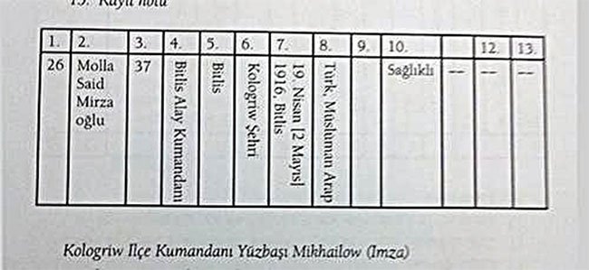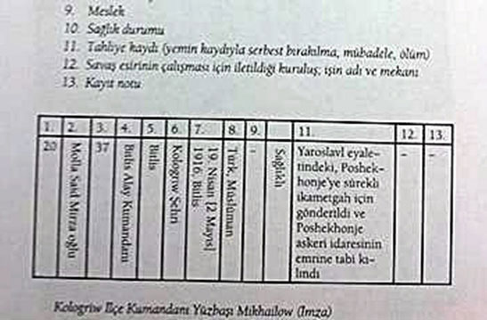 Bediüzzaman’ın esaretinin ilk başlangıcı olan Kologriv şehrinde kaydedilen kimlik bilgileri